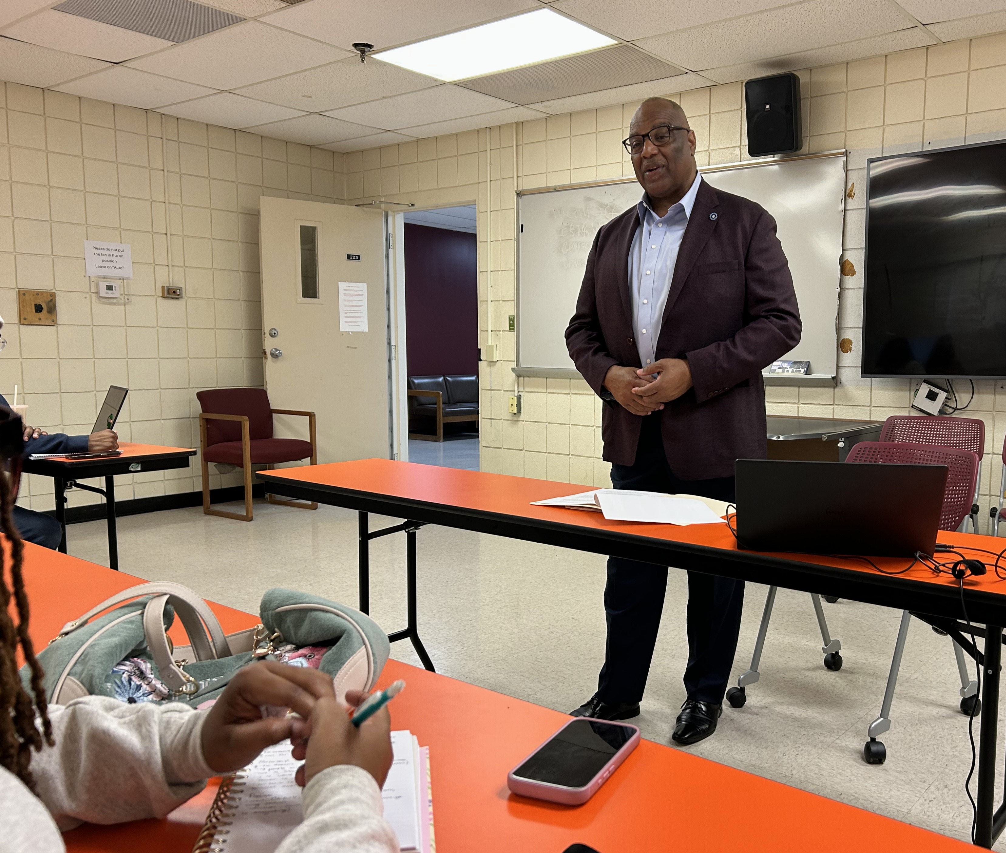 Orangeburg Mayor Michael Butler addresses Claflin student reporters.
